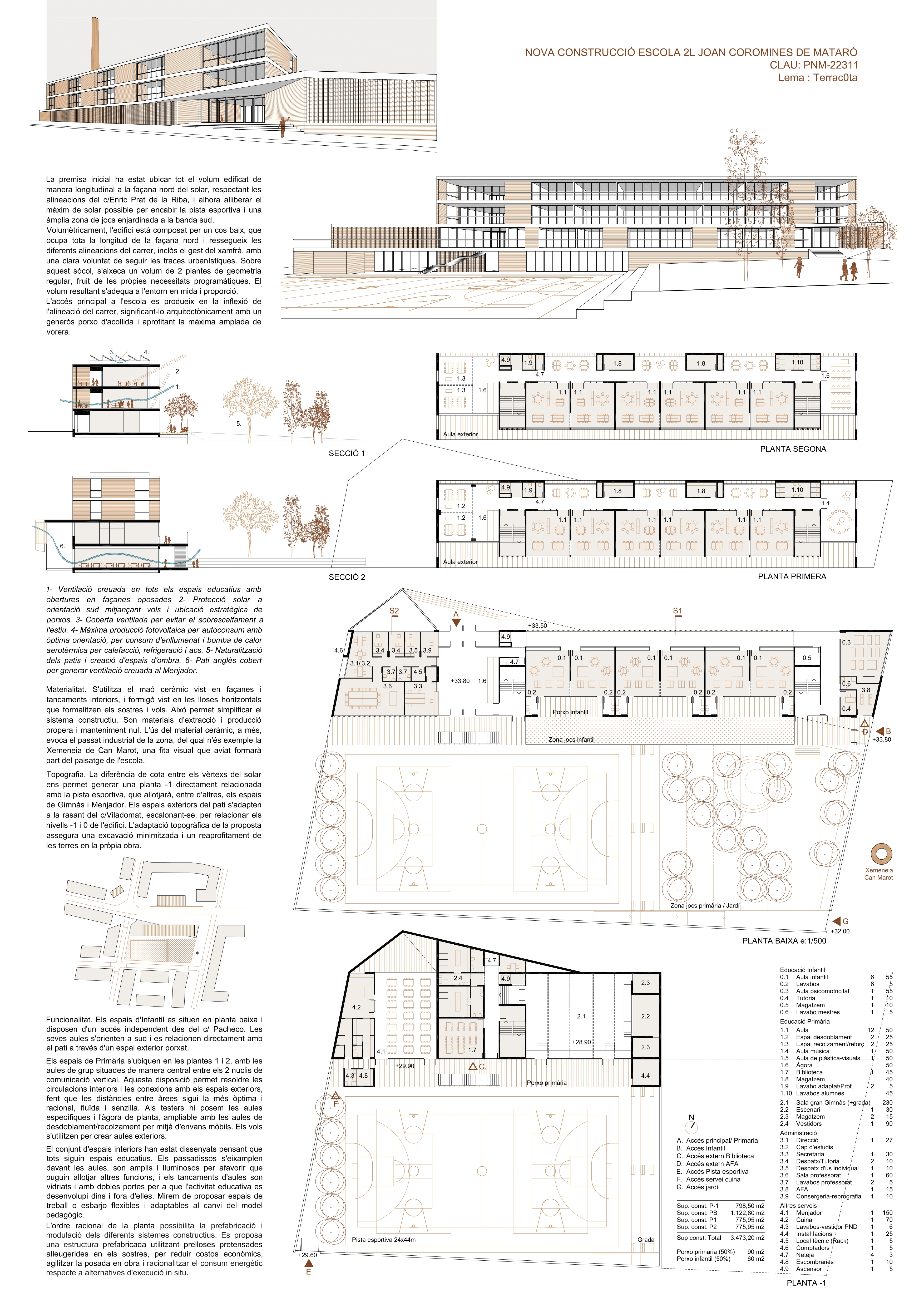 Ja és una realitat: el projecte guanyador per a la construcció de la nova Escola Joan Coromines de Mataró ja està definit. Amb el lema “Terrac0ta”, la proposta planteja un edifici modern, sostenible i pensat per a les necessitats educatives i socials del nostre temps.