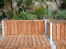 A l'edifici d'infantil, al pati de les Moreres, hi ha una nova estructura de fusta amb plantes aromàtiques per poder descansar, seure a xerrar o berenar.