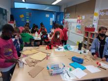 Les nenes i els nens de 6è hem fet una exposició dels nostres collages a la Cleda de l’escola.